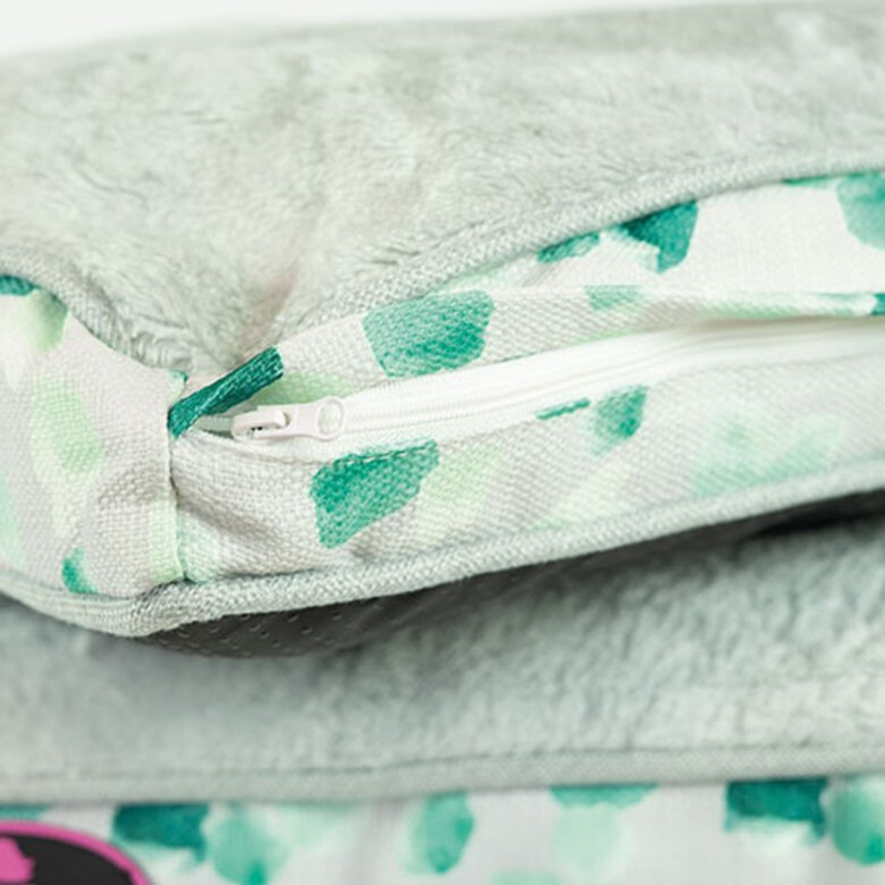 - Diseño Reversible: Dos estilos en uno, con una cara de suave terciopelo gris y otra estampada con encantadores motivos de hojas turquesa.